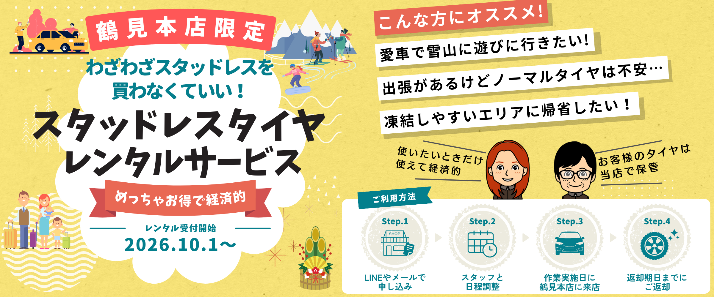 年末年始の楽しいレジャーや帰省に、当社のスタッドレスタイヤレンタルがオススメ!
